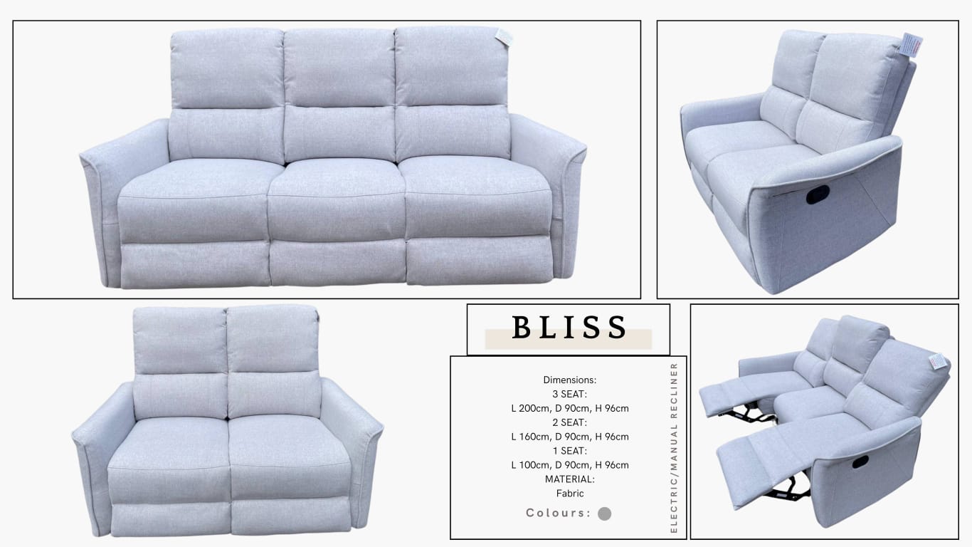 BLISS Recliner Sofa – Fabric Collection (Electric / Manual Options)