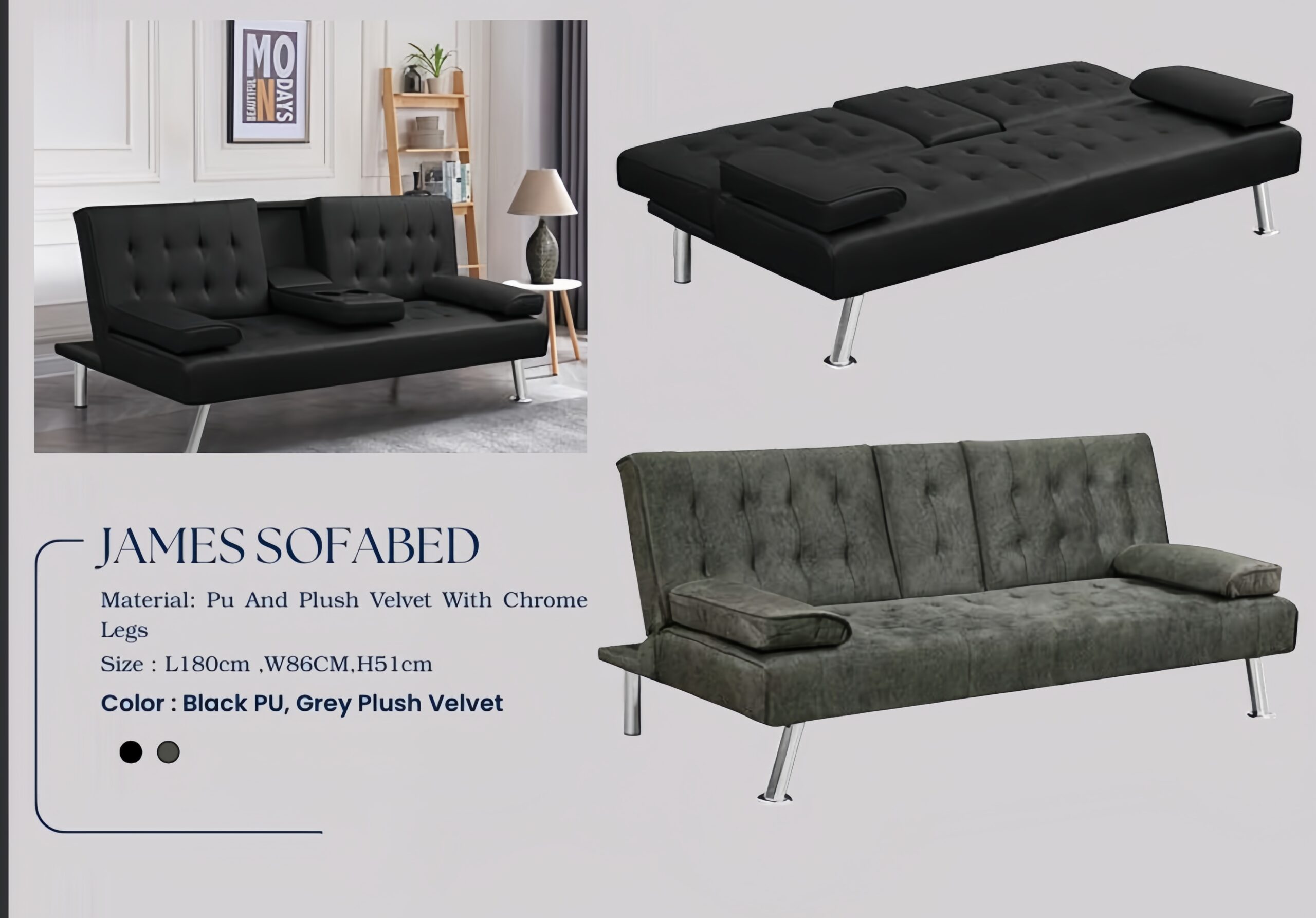 The James sofabed is a stylish and practical solution for modern living spaces. Designed to offer both comfort and functionality, it easily converts from a comfortable sofa into a convenient bed, making it ideal for guests and everyday use. With its clean design and supportive cushioning, the James sofabed fits perfectly in living rooms, guest rooms, or compact spaces while maintaining a contemporary look.