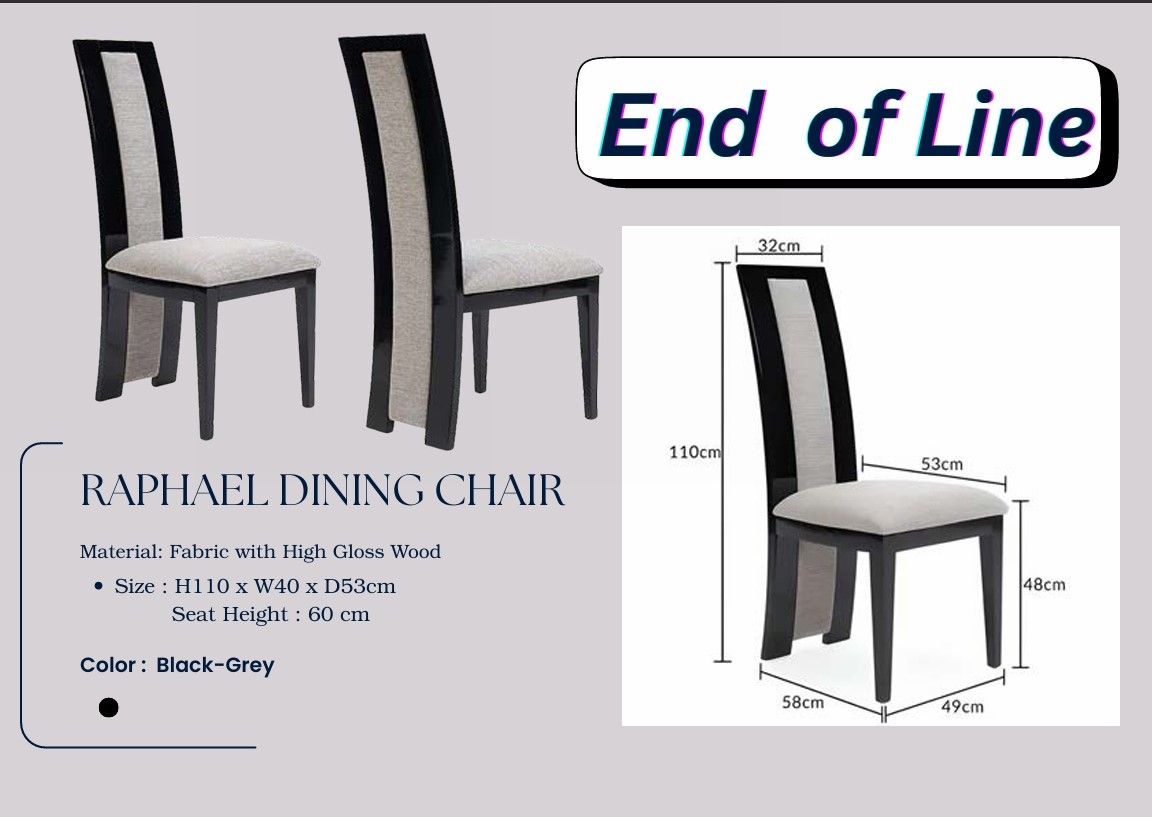 Elevate your dining experience with the RAPHAEL Dining Chair. Crafted with premium fabric and high-gloss wood, this chair combines comfort, style, and durability.